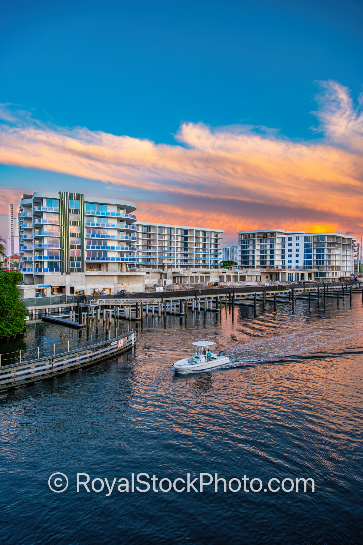 The Ritz Carlton Residences Under Constrcution with a Boat Going